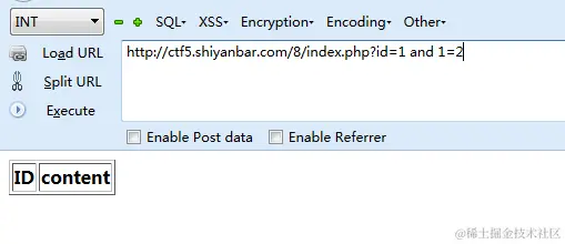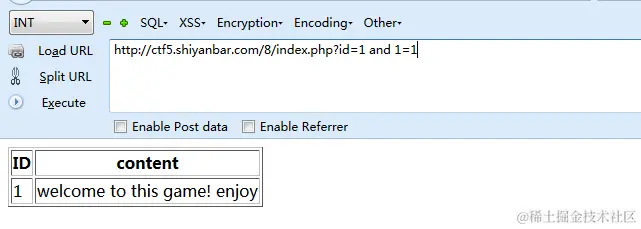 这是我入门Web开始写的第三道题,这道题看样子通过率还蛮高,难易程度显示易,咱们可以试试这题!咱们点开这个题看一下,咱们做Web题首先一点,先看源码,咱们发现什么东西也没有,就是一个简单的table表格,这个时候我们陷入了僵局,所以我们需要进一步的观察,然后我们发现URL有点意思,它是传了一个id进去,id=1,如果对安全有熟悉的人就知道,这个可能是个SQL注入点,SQL注入,简单来讲,就是前端通过提交一个非法的数据库语句或请求,不该被前端获取的信息放到前端去了,从而暴露出来了,咱们可以对它进行实验一下,咱们可以加个单引号试试~~~