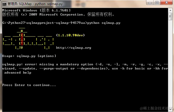 当然我们可以手工注入,火狐插件提供了这个功能,但是呢,咱们CTF比赛,时间就是生命,时间就是金钱,咱们不能把时间浪费在手工注入上,咱们应该做的是使用工具,这个时候我们应该用到的工具叫SQLMap,这个工具的使用需要配上Python环境~~~