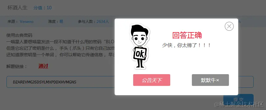 看到密钥,懂一点密码学的人就知道,这个可能是个维吉尼亚密码!