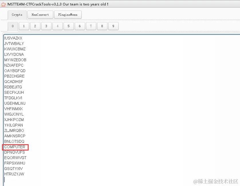 根据这个,我们可以仔细对比这个表,解密出的COMPUTER是它的密文,咱们根据题干和对应这个表,可以得到如下字符串: