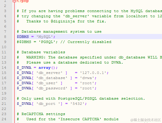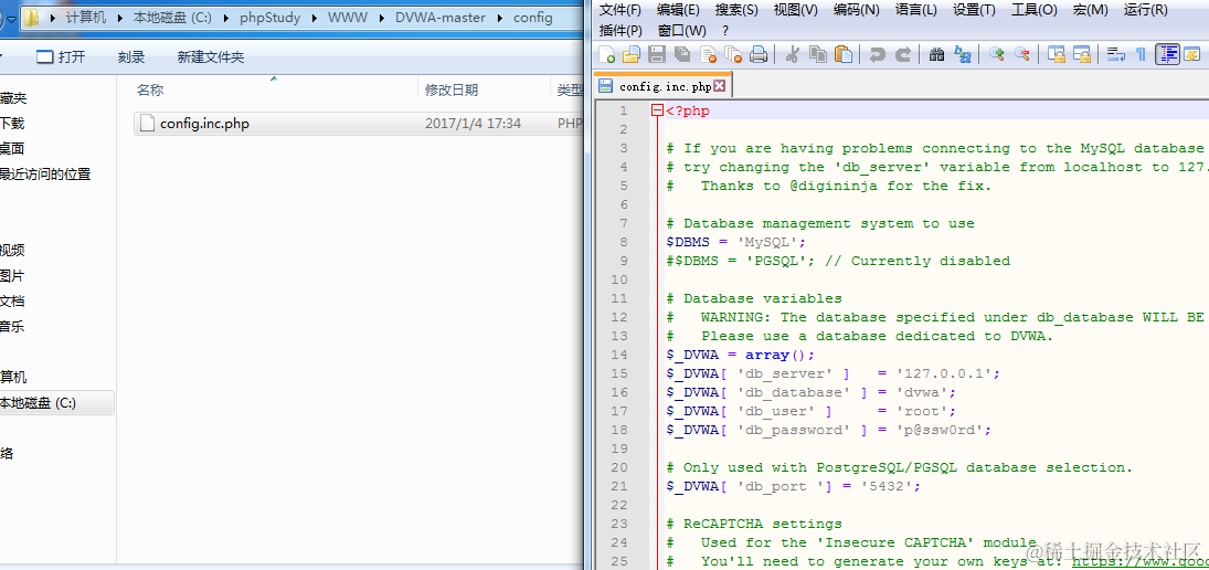 下一步。需要配置DVWA链接数据库,请打开config文件夹,打开config.inc.php。