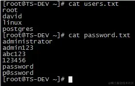 1、手动创建用户名字典和密码字典,这里只是为了演示,只加了几个用户名和弱口令。真正破解时,需要利用密码字典生成器生成强大的字典。
