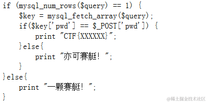 如果用户输入的pwd和数据库中查询的pwd相同的话,输出CTF{XXXXXX},否则输出其它的!