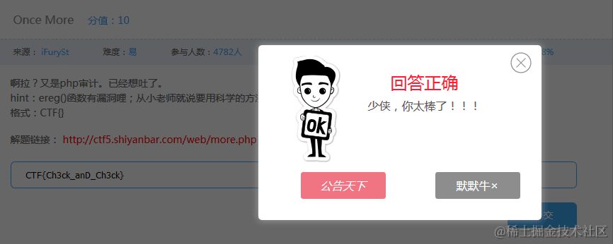 解题链接: ctf5.shiyanbar.com/web/more.ph…