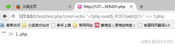 4、escapeshellcmd()函数会转义命令中的所有shell元字符来完成工作。这些元字符包括:#&;`,|*?~<>^()[]{}$\\。例如写入一句话可被过滤 ,所以命令无法执行成功,无法生成一句话文件。