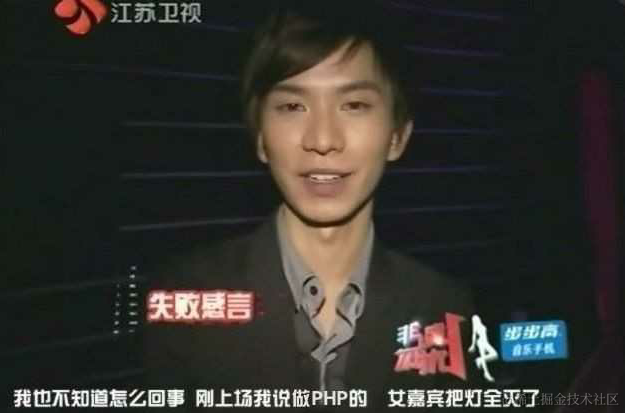 ****1、非诚勿扰相亲节目中,被灭灯的男子采访感言:我不知道为什么,说自己是做PHP,灯就全灭了。能够让女嘉宾灯全灭,这语言还不够好?黑人问号脸hhh