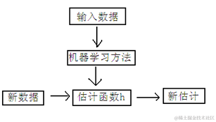 下面是一个典型的机器学习的过程,首先给出一个输入数据,我们的算法会通过一系列的过程得到一个估计的函数,这个函数有能力对没有见过的新数据给出一个新的估计,也被称为构建一个模型。就如同上面的线性回归函数。