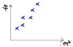 这个表类似于帝都5环左右的房屋价钱,我们可以做出一个图,x轴是房屋的面积。y轴是房屋的售价,如下: