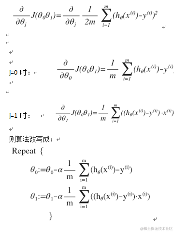 对我们之前的线性回归问题运用梯度下降法,关键在于求出代价函数的导数,即:\