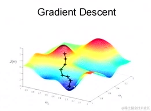 当然,可能梯度下降的最终点并非是全局最小点,可能是一个局部最小点,可能是下面的情况: