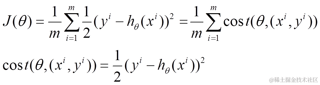 我们程序也需要一个机制去评估我们θ是否比较好,所以说需要对我们做出的h函数进行评估,一般这个函数称为损失函数(loss function)或者错误函数(error function),描述h函数不好的程度,在下面,我们称这个函数为J函数