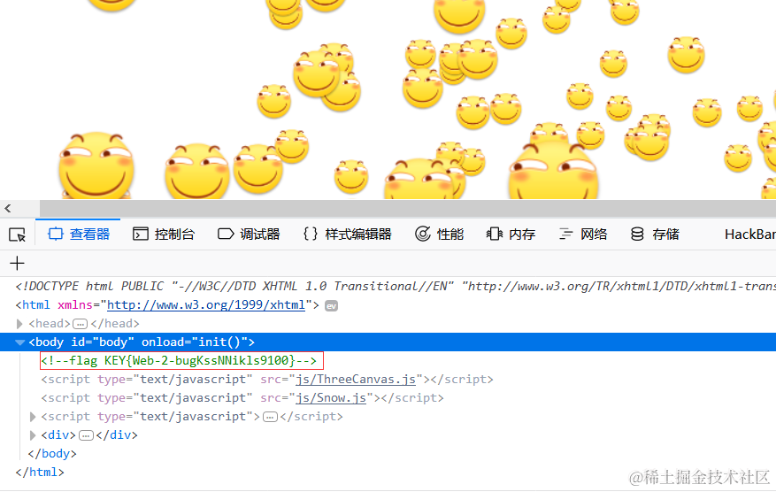 BugkuCTF web2 Angel_Kitty 2021-05-18 80 阅读1分钟 前言 写了这么久的web题,算是把它基础部分都刷完了一遍,以下的几天将持续更新BugkuCTF WEB部分的题解,为了不影响阅读,所以每道题的题解都以单独一篇文章的形式发表,感谢大家一直以来的支持和理解,共勉~~~ 打开一看,我们可以看到一张滑稽的动图 我们F12查看页面源码,直接就找到了Flag
