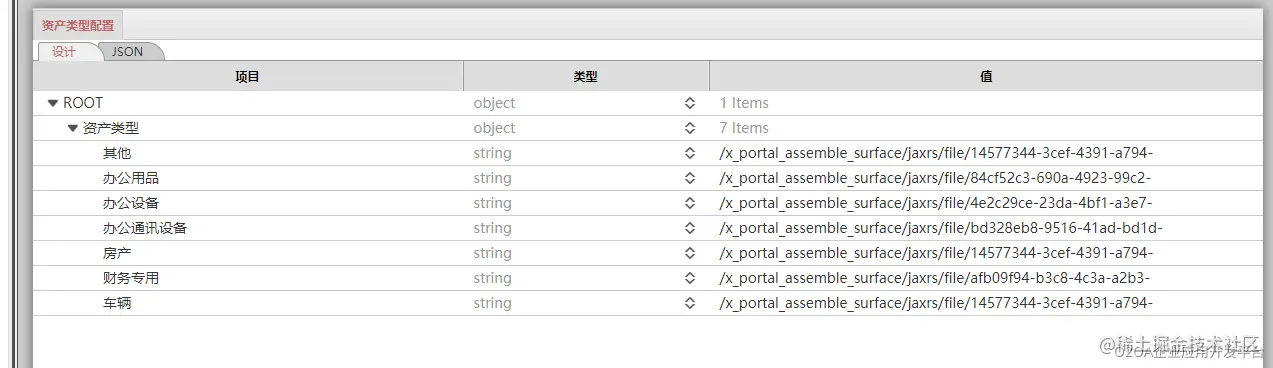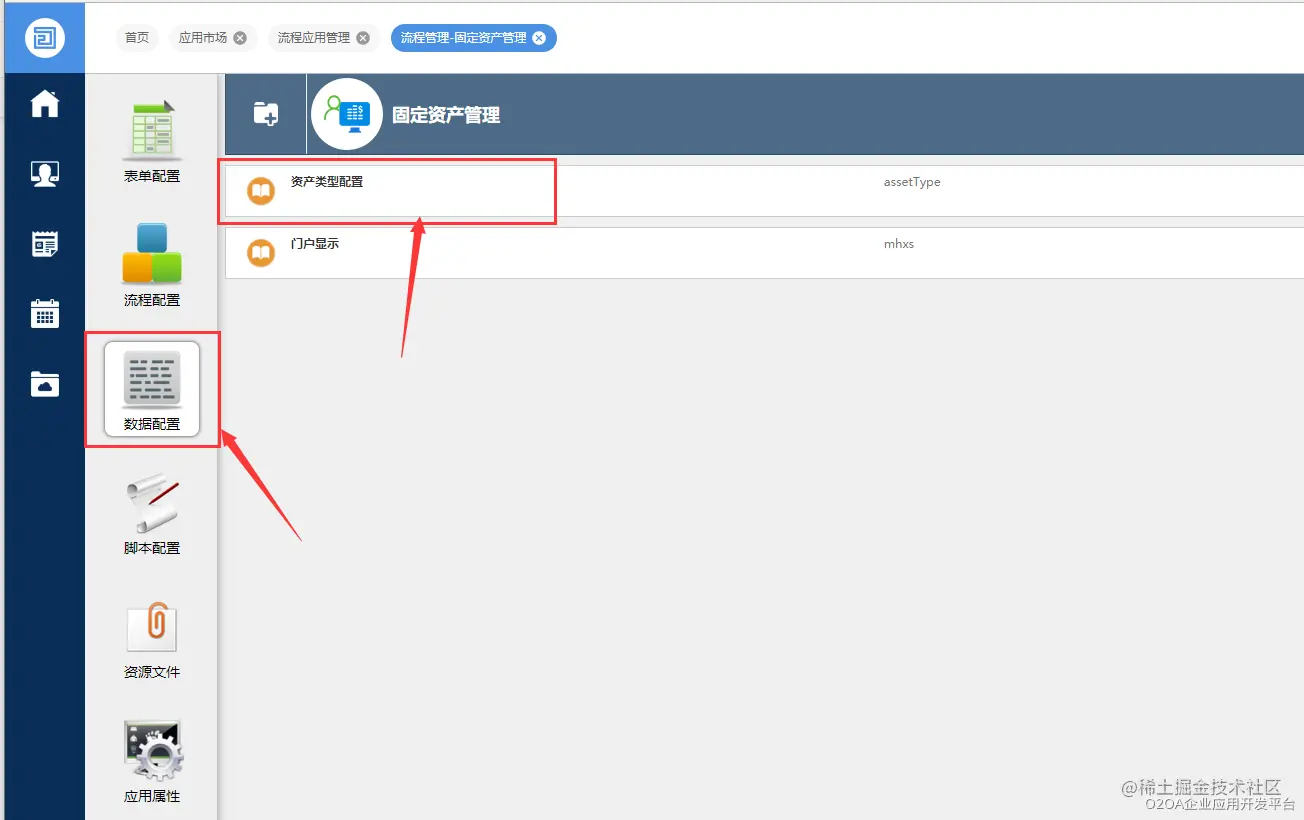 2、点击“数据配置”,打开“资产类型配置”,如下图所示: