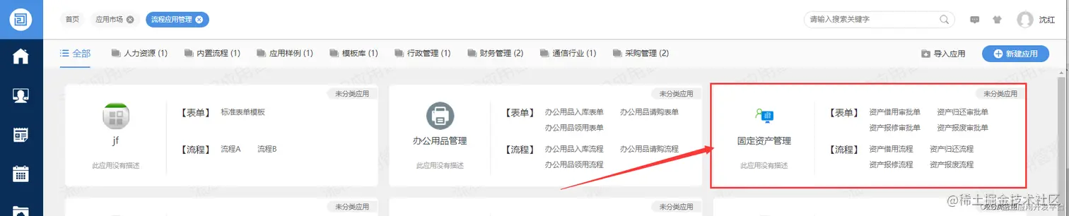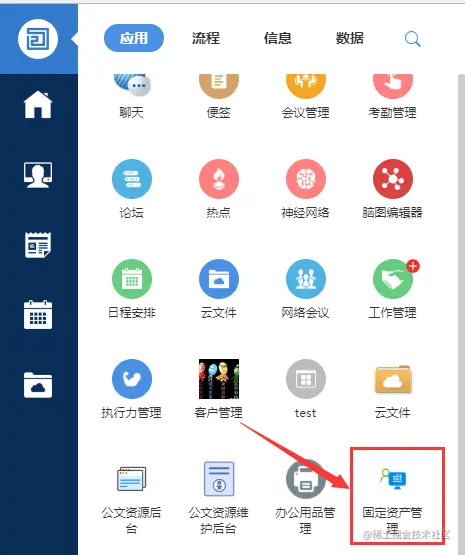 1、打开“流程管理平台-固定资产管理”,如下图所示: