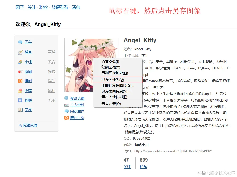 首先你得准备一张png或者jpg/jepg的图片,这个时候你可能会想要你的博客头像作为图片,你只需要这样子:
