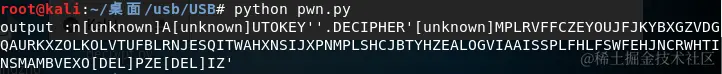 output :n[unknown]A[unknown]UTOKEY''.DECIPHER'[unknown]MPLRVFFCZEYOUJFJKYBXGZVDGQAURKXZOLKOLVTUFBLRNJESQITWAHXNSIJXPNMPLSHCJBTYHZEALOGVIAAISSPLFHLFSWFEHJNCRWHTINSMAMBVEXO[DEL]PZE[DEL]IZ'