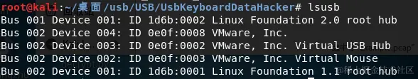 上图是我在虚拟机环境下连接在我电脑上的USB设备列表,通过lsusb查看命令。