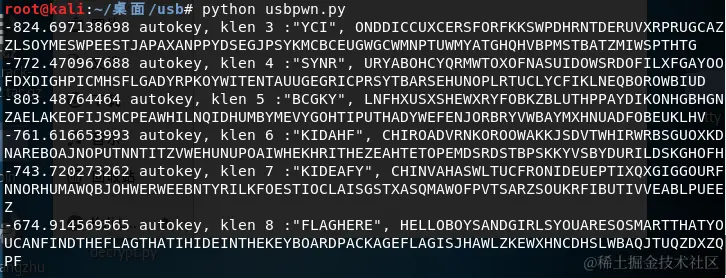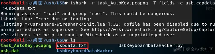 运行命令并查看usbdata.txt发现数据包长度为八个字节