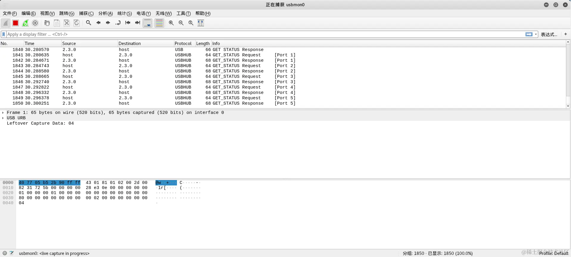 首先我们从上面的数据包分析可以知道,这是个USB的流量包,我们可以先尝试分析一下USB的数据包是如何捕获的。
