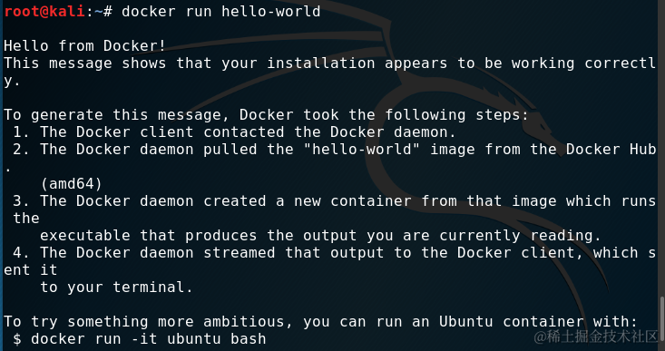 接下来使用 docker run 命令来启动容器