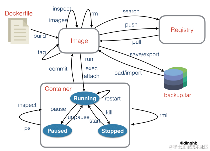 从上图我们可以看到,Docker 中包括三个基本的概念: