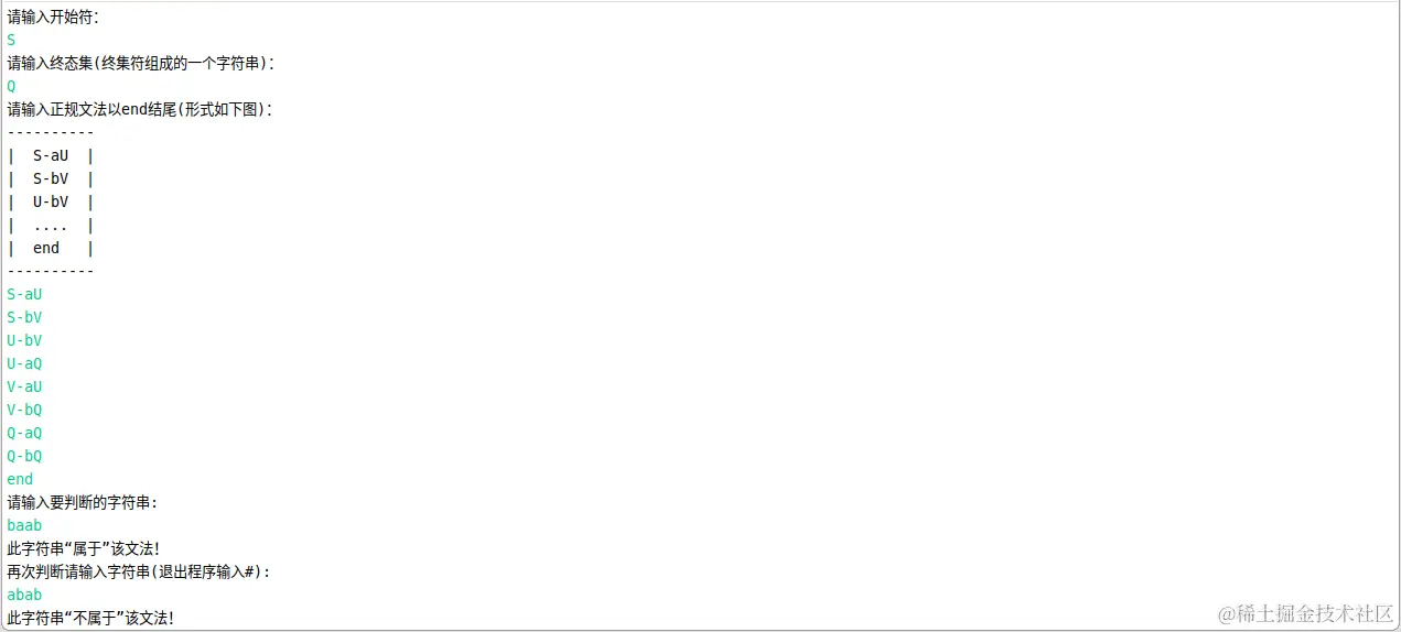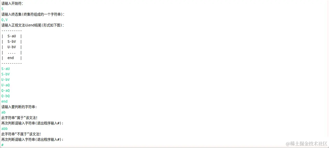 示例如(仅供参考) G[S]:S→aU|bV U→bV|aQ