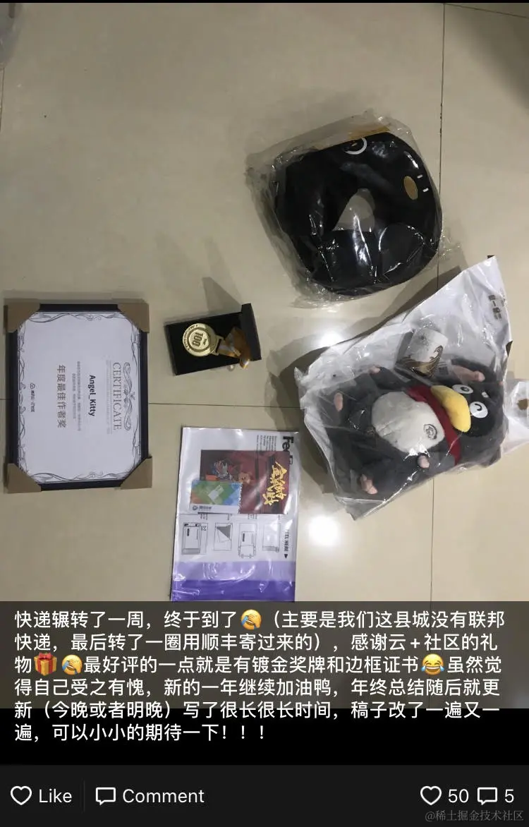 这一年我获得了一些受之有愧的荣誉,莫名地拿到了腾讯云+社区年度最佳作者奖。