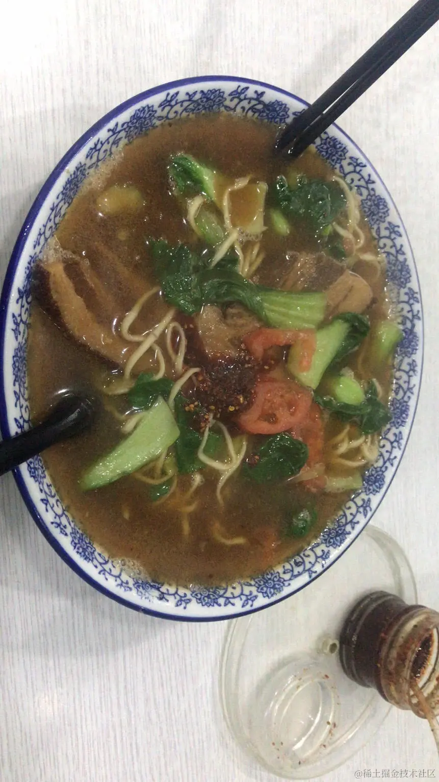 一路沿着地铁站附近找吃饭的地儿,总算找到一家面馆,老板说我再晚来一分钟就关店了,南京的夜生活很不丰富,不过大肉面确实很地道,肥而不腻的那种,吃起来有点像果冻似的,分量很足。