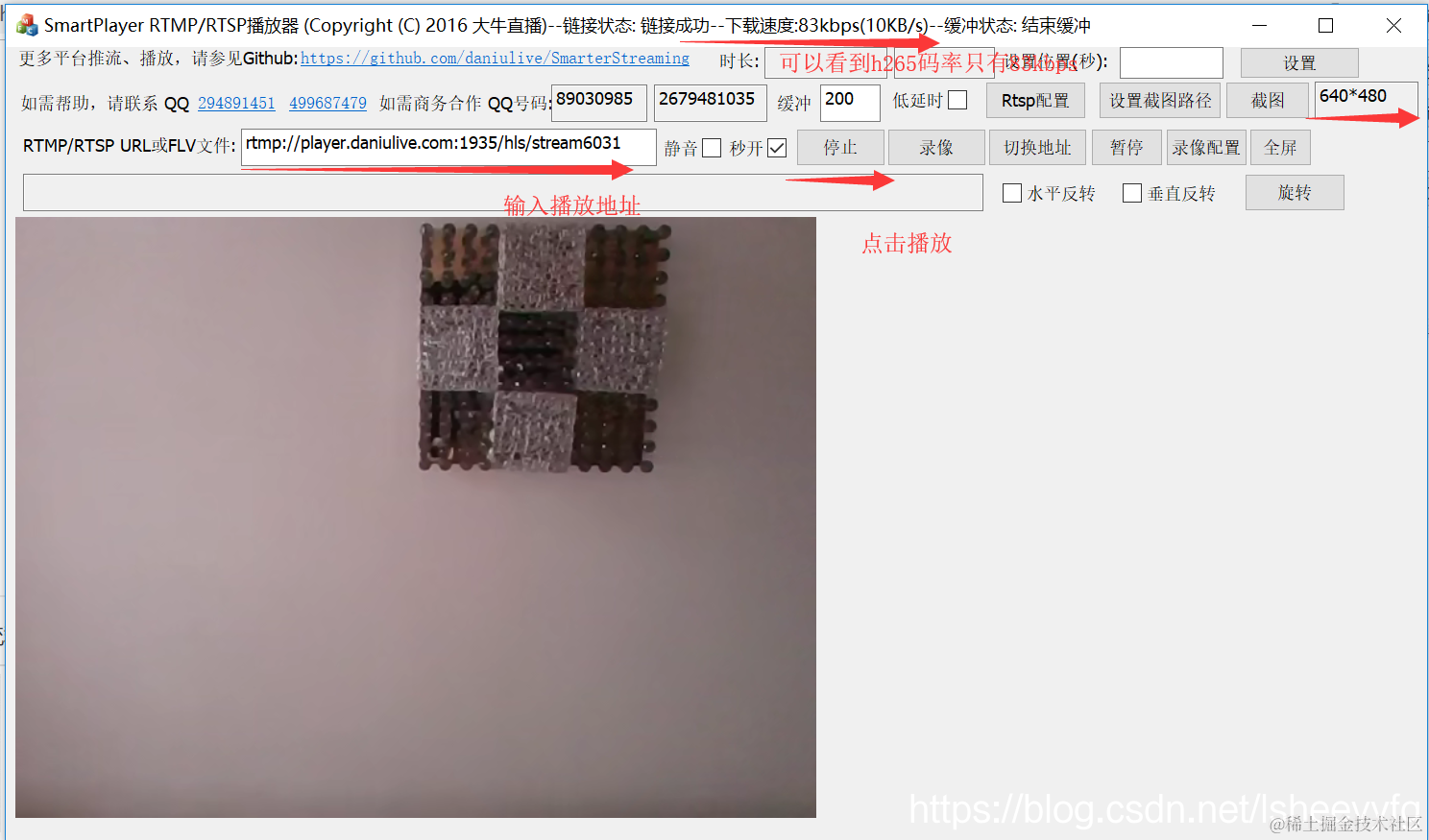 接下来实际看看效果,从github下载rtmp h265推送工具和rtmp h265播放工具(播放目前支持windows, Android, IOS).