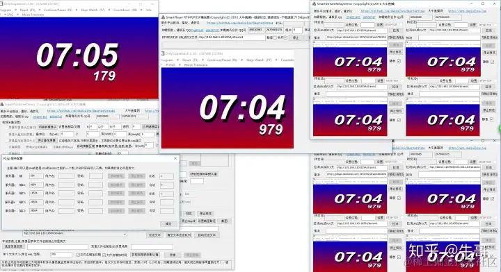 整体效果展示,以采集桌面左上角640×480区域为例,同时播放9路,并分别连不同的服务: