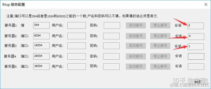 6.服务器负载查看:再次点击“配置查看RTSP服务”,即可看到每个服务连接的会话数: