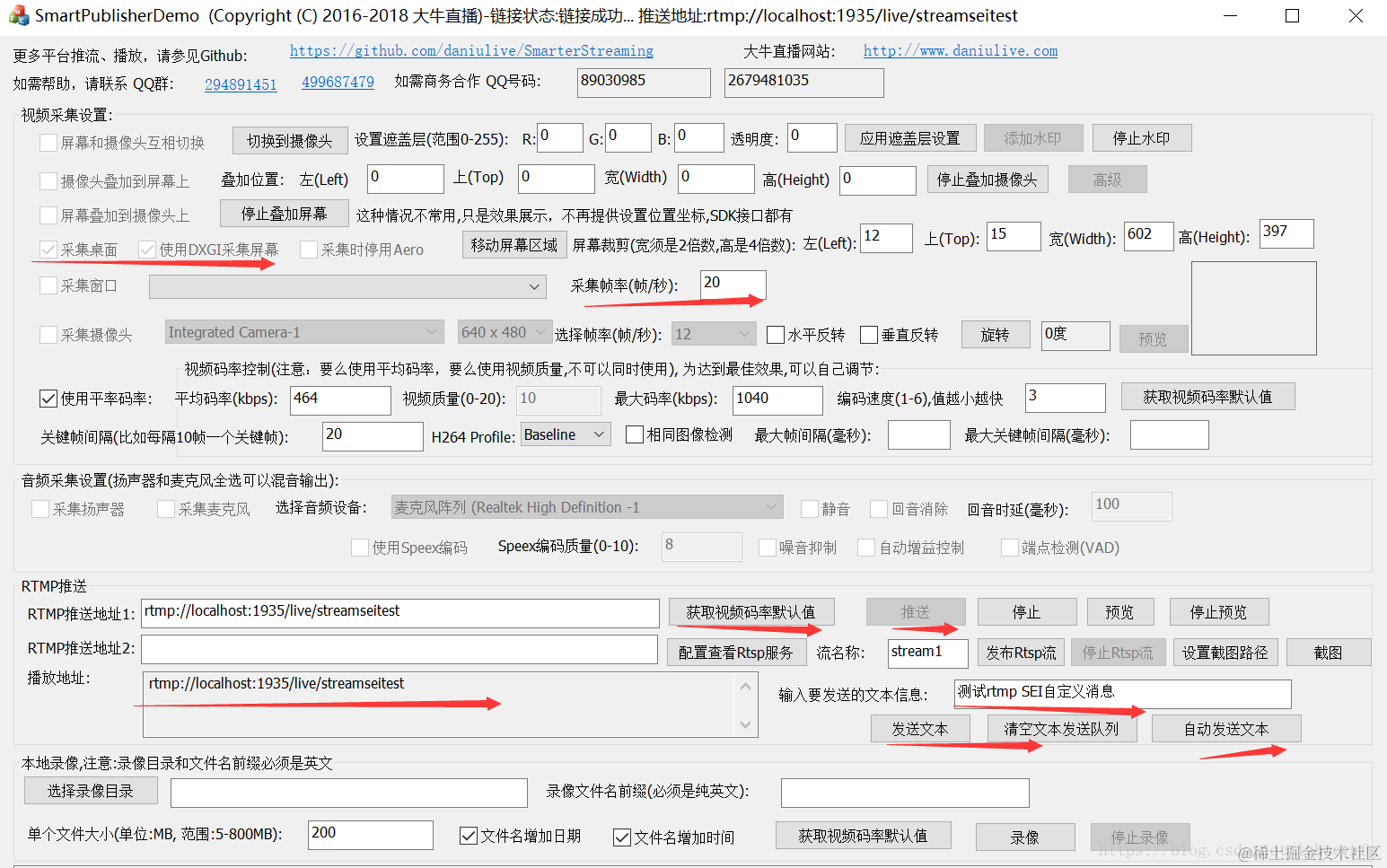 1. 启动推送端软件: SmartPublisherDemo.exe,可到 Github 下载大牛直播SDK的相关测试软件或demo源码。