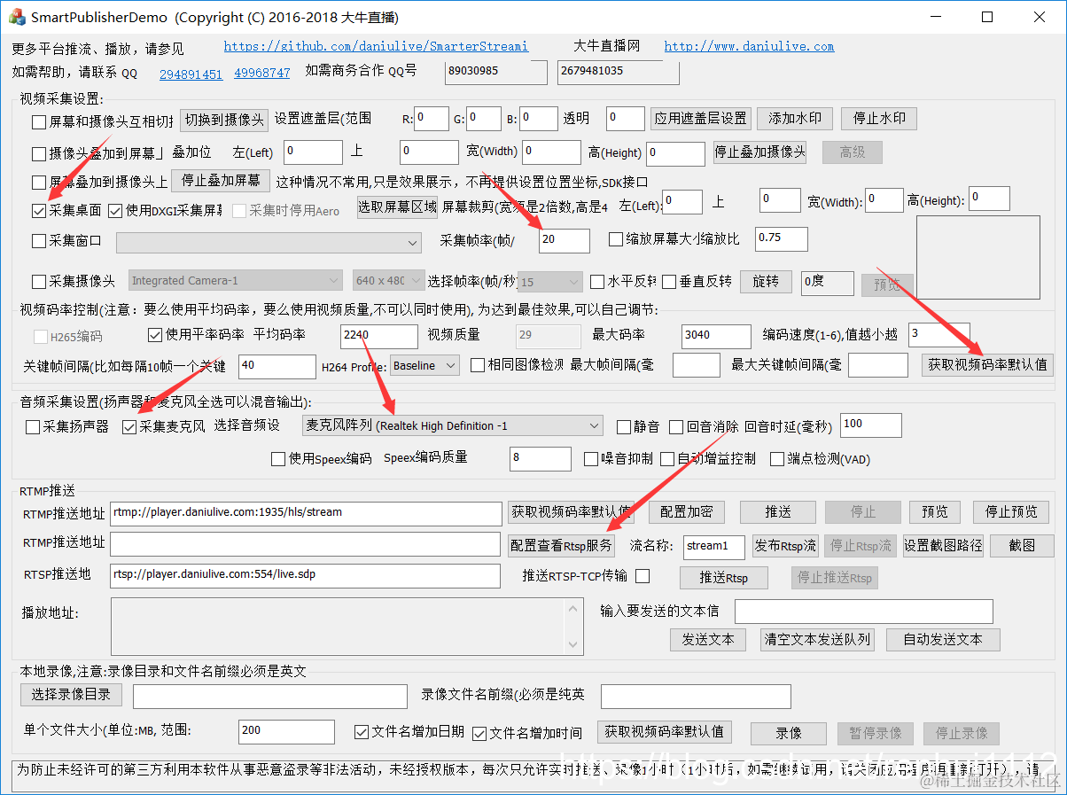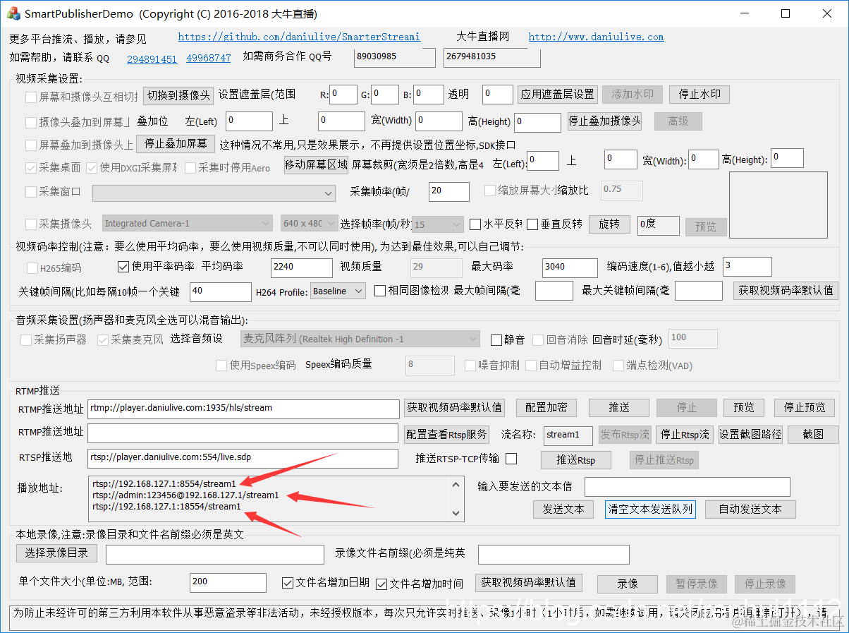 如需要下载相关demo,可以到 github 下载参考(Windows平台RTMP|RTSP推送SDK、内置RTSP服务SDK、录像SDK(C++) Demo工程本地下载)