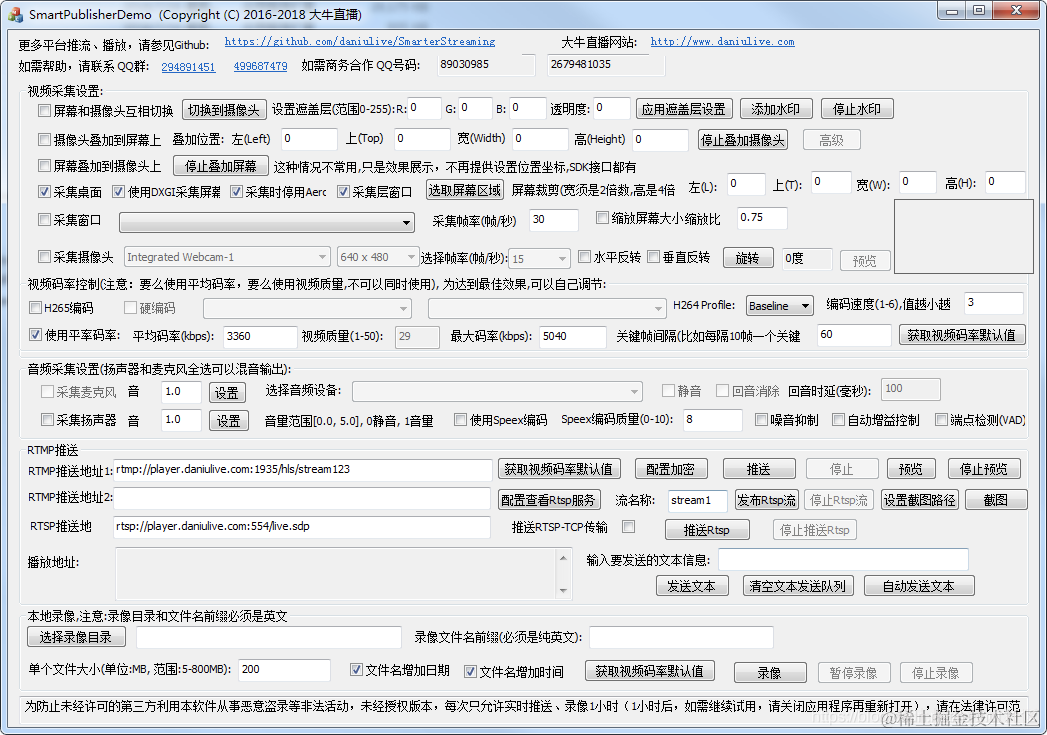- 支持Windows屏幕采集、屏幕裁剪、特定窗口采集、摄像头采集、扩展外部H.264数据对接;