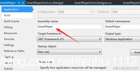 Application->Assembly name,**大牛直播SDK按照APP名称授权,未授权版本,此处请改成“SmartPlayer” **,如需授权,可直接联系商务;