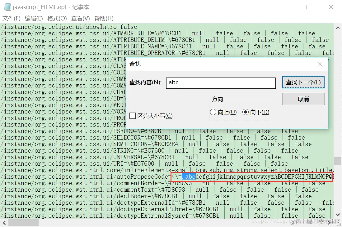 步骤五: 后用记事本或其它文本工具打开此文件 ,Ctrl+F查找 .abc 然后将其值改为