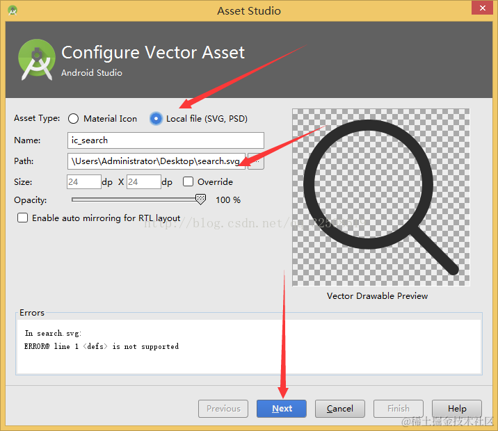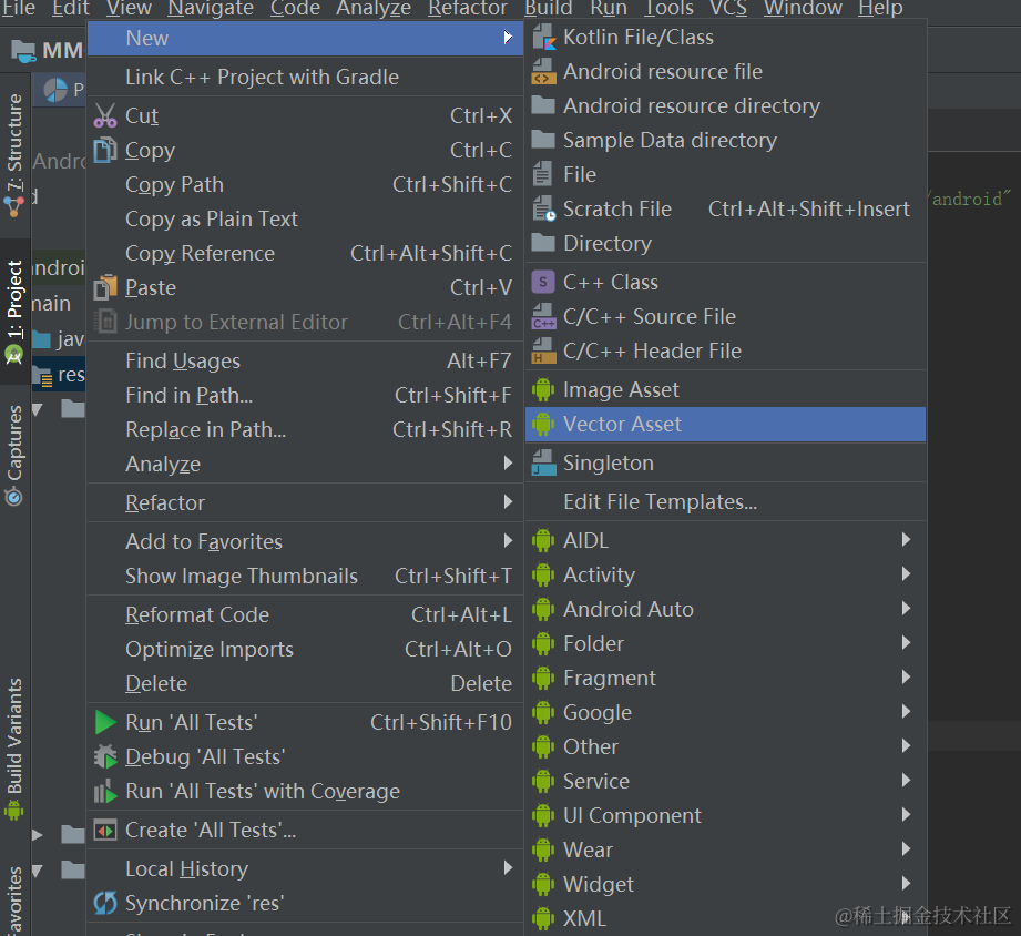 第二步:在项目中的res目录下创建vector asset。如图:\