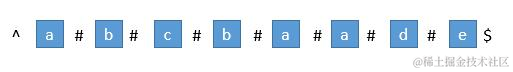 第一步,就是处理字符串的奇数偶数引起的分类问题,在马拉车算法里,我们对字符串的首尾以及间隔进行填充(注意填充的时候要用字符串中不会出现的字符),这样保证了我们在使用中心扩展法的时候,解决了奇数偶数的问题,形象一点看下图。