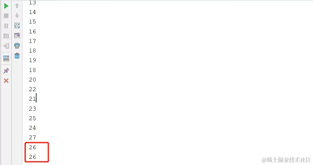 我们可以看到,这里出现了两个26,为什么会出现这种情况,出现这种情况显然表明我们这个方法根本就不是线程安全的,出现这种问题的原因有很多,我们说最常见的一种,就是我们A线程在进入方法后,拿到了count的值,刚把这个值读取出来还没有改变count的值的时候,结果线程B也进来的,那么导致线程A和线程B拿到的count值是一样的。