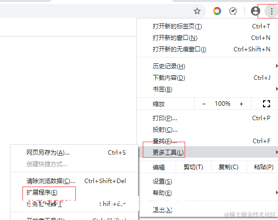弄完上面的步骤之后,进入扩展程序中心,启用开发者模式,加载正在开发的程序包,选择刚才的文件夹就行了,如下图,进入扩展插件目录后(chrome://extensions)加载已解压的扩展程序。