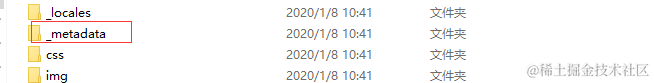 解压rar文件后,打开该文件夹,把里面的"_metadata"文件夹改名为"metadata"(去掉下杠)