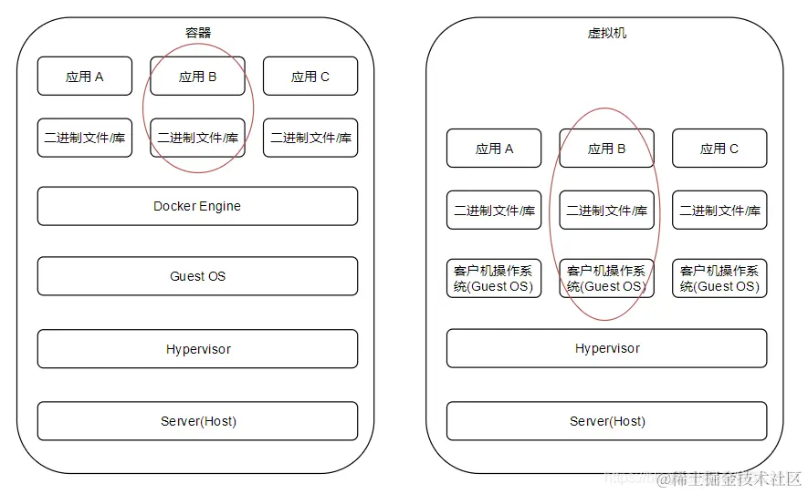 相比虚拟机我们可以简单的这么说他们的区别