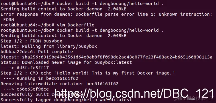 #如我的docker run dengbocong/hello-world