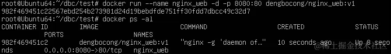 docker run --name nginx_web -d -p 8080:80 angelkitty/nginx_web:v1