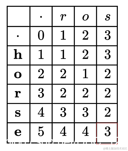 最后我们会得到如下的结果,二维数组最后的 3 就是我们的答案。