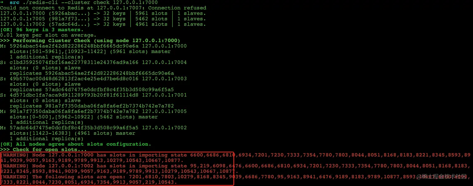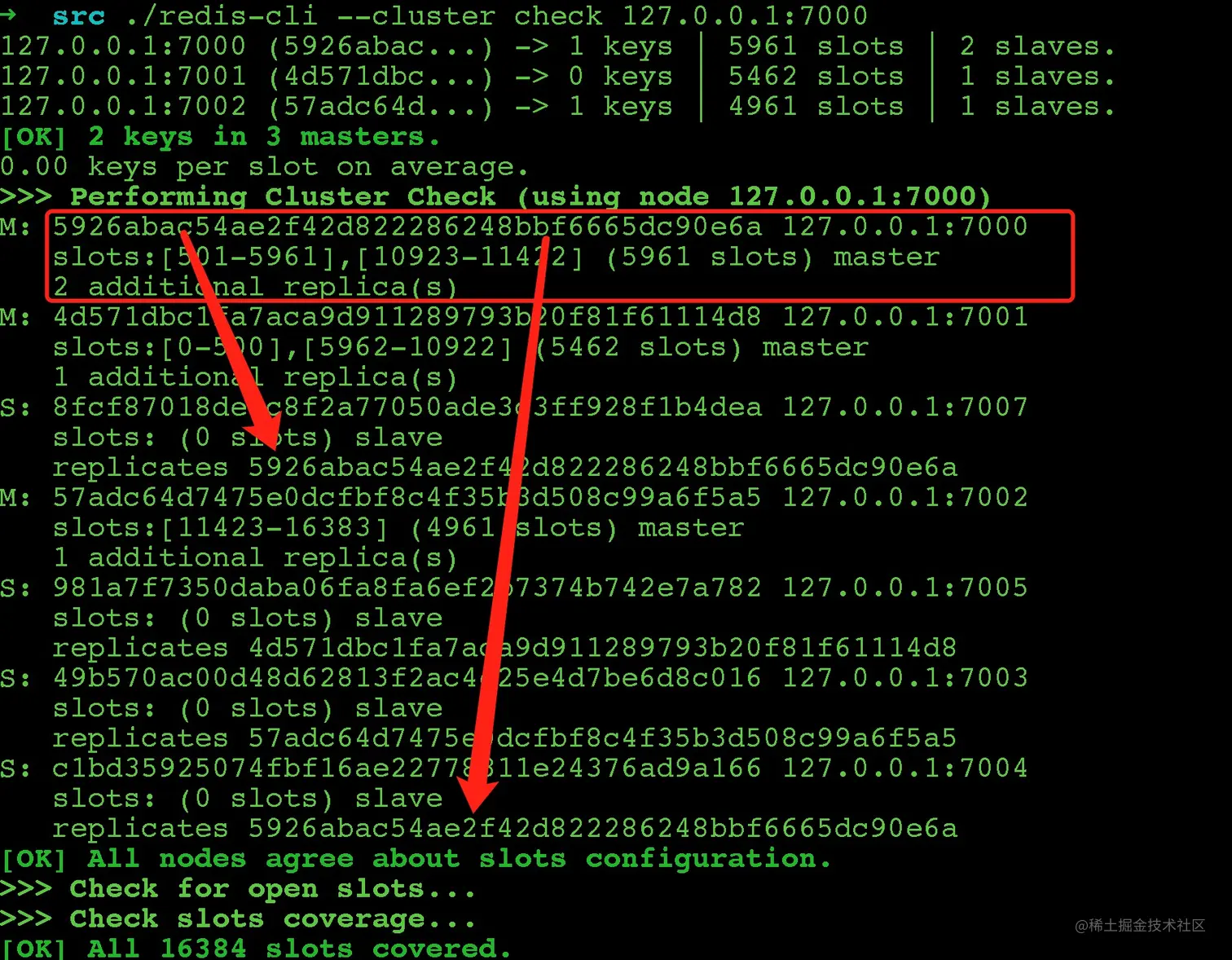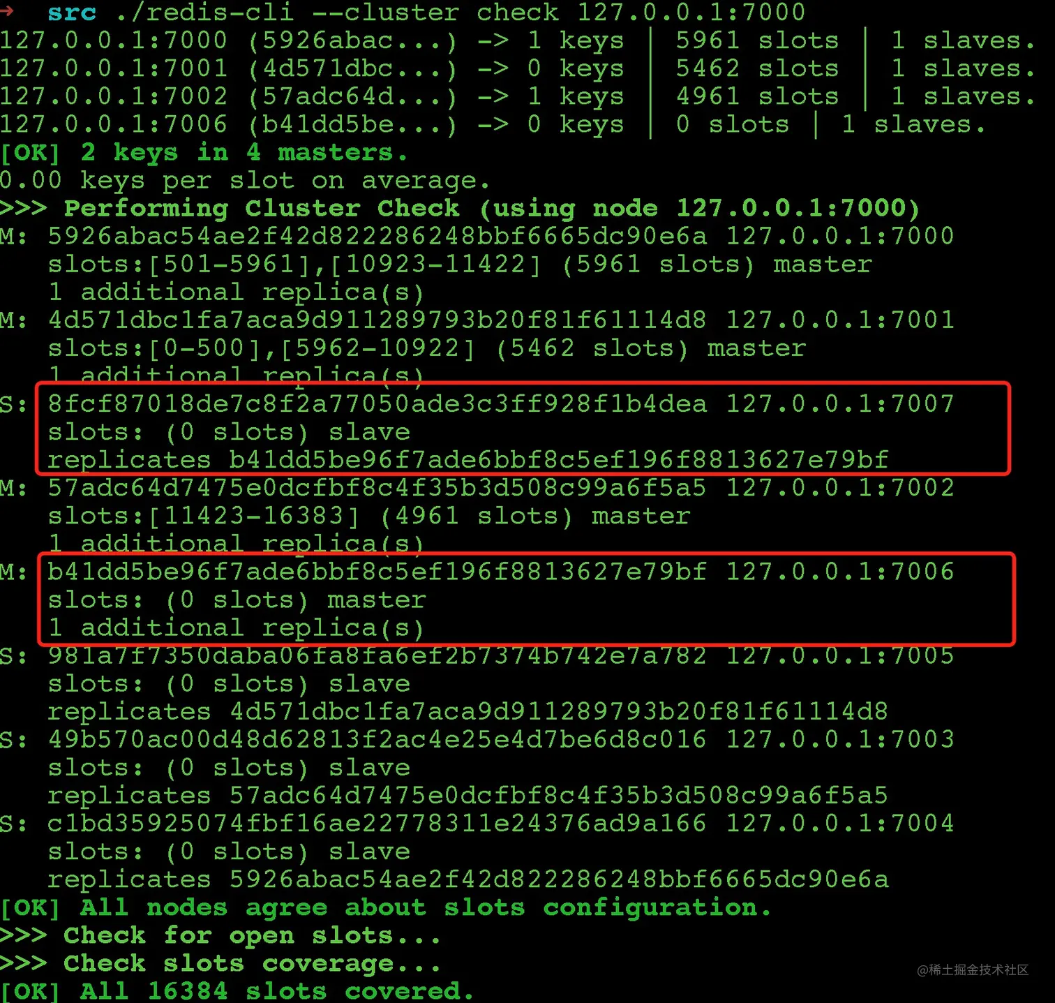 ➜ src ./redis-cli --cluster check 127.0.0.1:7000