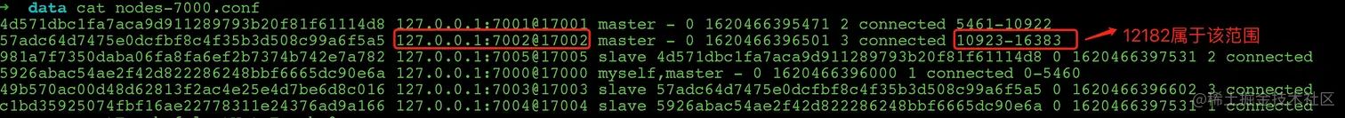 执行结果可以看出请求从7000转发到了7002,转发是依据集群的配置实现的