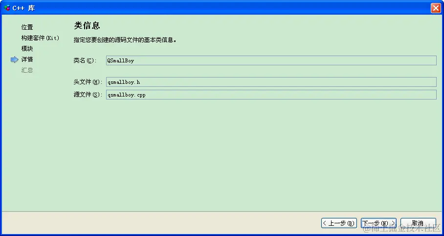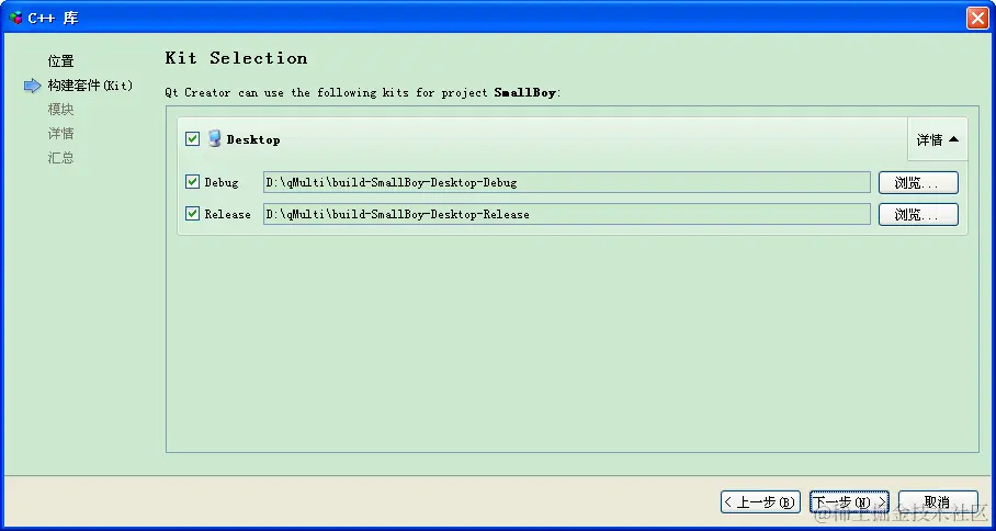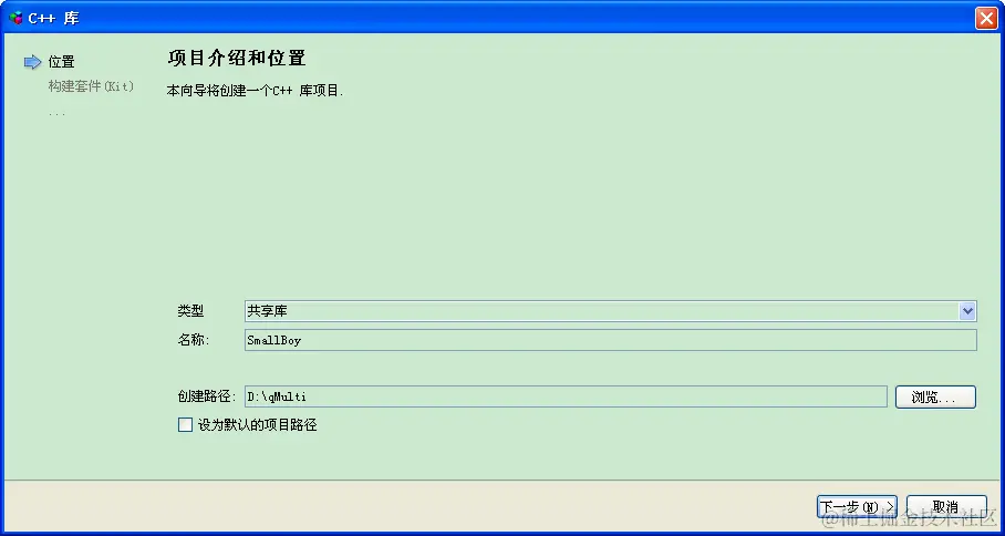 3、使用Qt Creator创建共享库项目:SmallBoy。注意:创建模板是C++ lib,存放路径是D:\qMulti