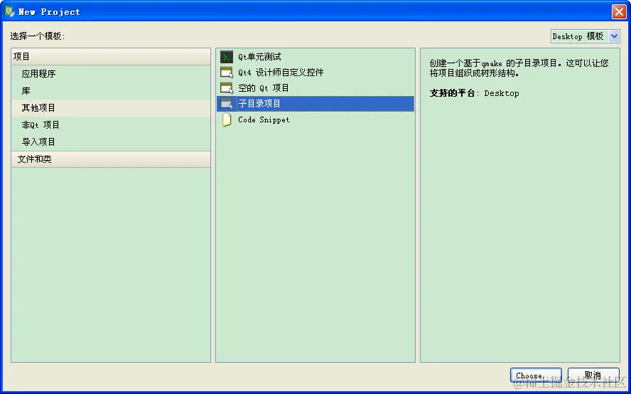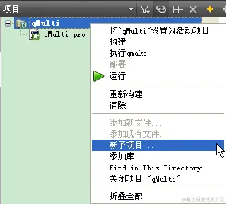 然后用Qt Creator打开这个空的工程。右键菜单,选择“新子项目”,创建即可。(*^__^*)